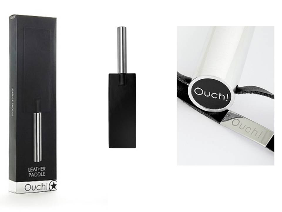 Шлёпалка с наконечником в виде прямоугольника, изготовленным из тонкой кожи и ручкой из металла отличного качества. Ручка имеет длину 12,5 см. Общая длина шлёпалки 35 см. Размеры: 41 x 10 x 4 см. Вес: 314 грамм.