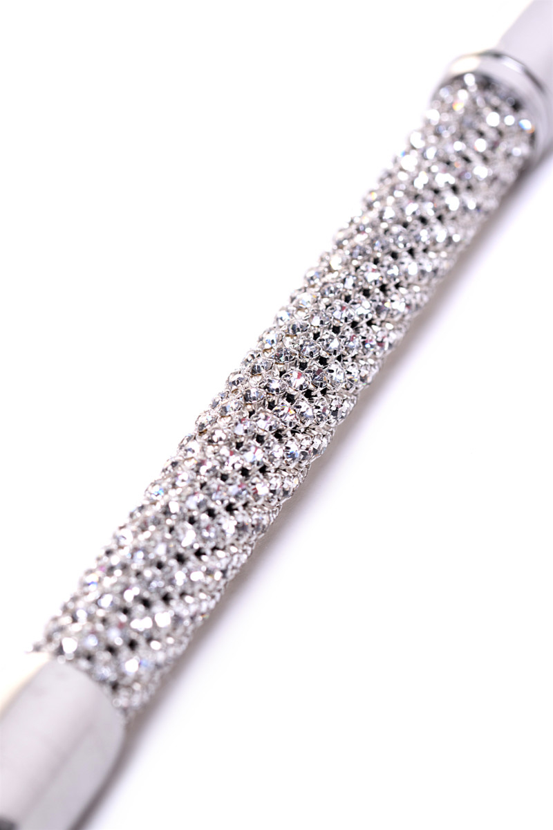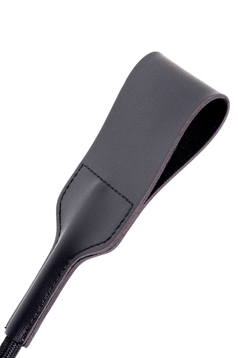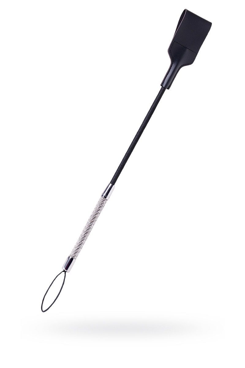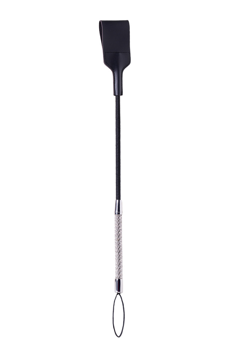 Шикарный стек из натуральной кожи чёрного цвета - предназначен для всех ценителей ролевых БДСМ-игр. На изумительно бриллиантовой ручке - изящная петелька, для комфортного удержания стека в руке.
