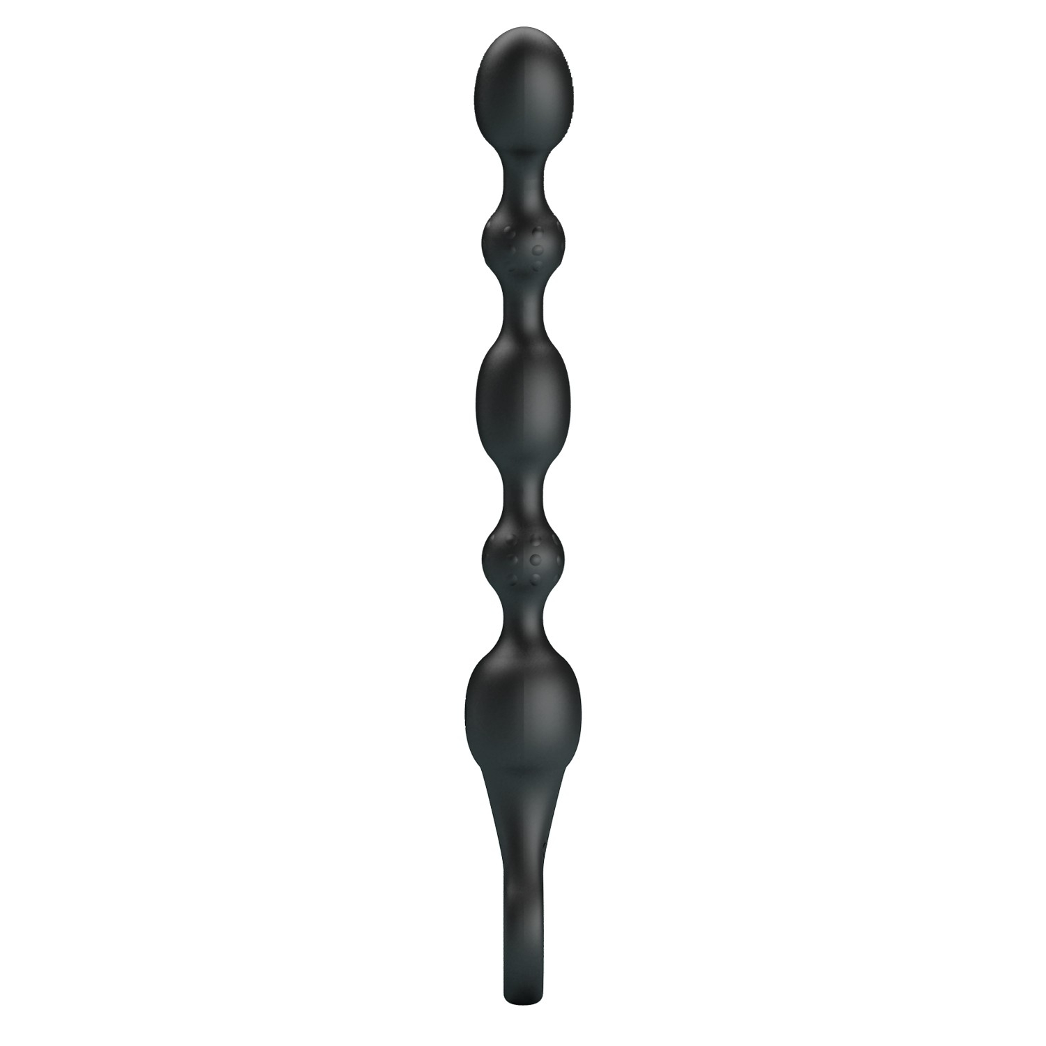 Состоит цепочка из 5-ти упругих шариков, соединенных между собой. Кончик верхнего шарика округлый, что поможет ему легко и плавно войти в анус. Плавные линии, изгибы и переходы способствуют интенсивному массажу анальных стенок и приятному давлению на них. Ручка в виде кольца выступает безопасным стопором и удобна для управления и захвата стимулятора.