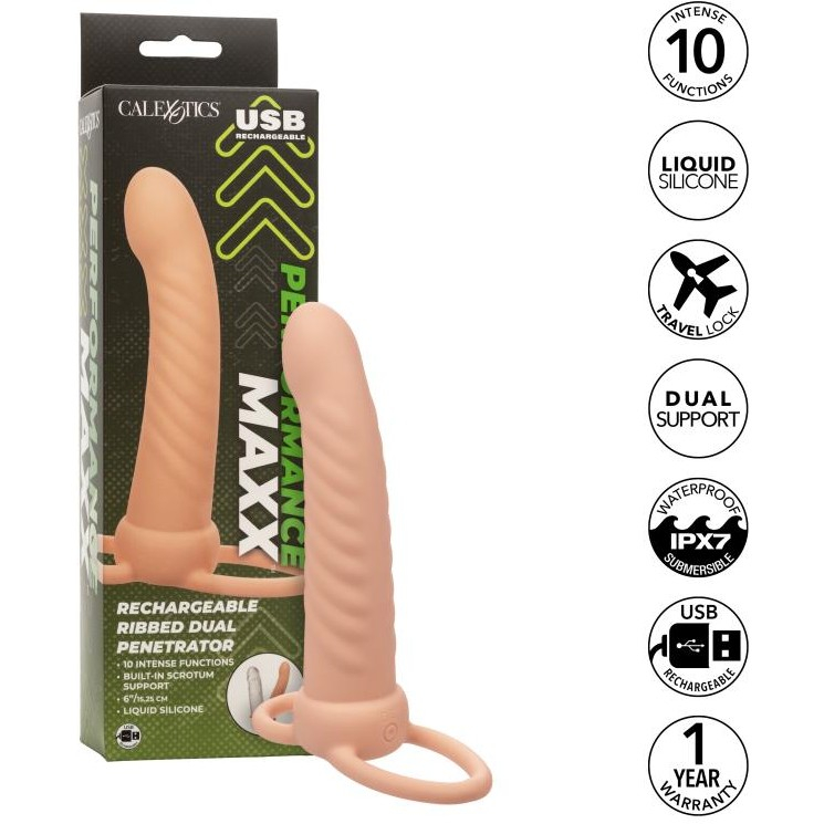 Rechargeable Dual Penetrator- это перезаряжаемая удобная насадка с реалистичным дизайном, которая поможет насладиться двойным проникновением не привлекая еще одного партнера. Благодаря загнутой головке, насадка будет давить на чувственные стенки ануса и дарить потрясающие ощущения, так же её можно использовать как массажер простаты.