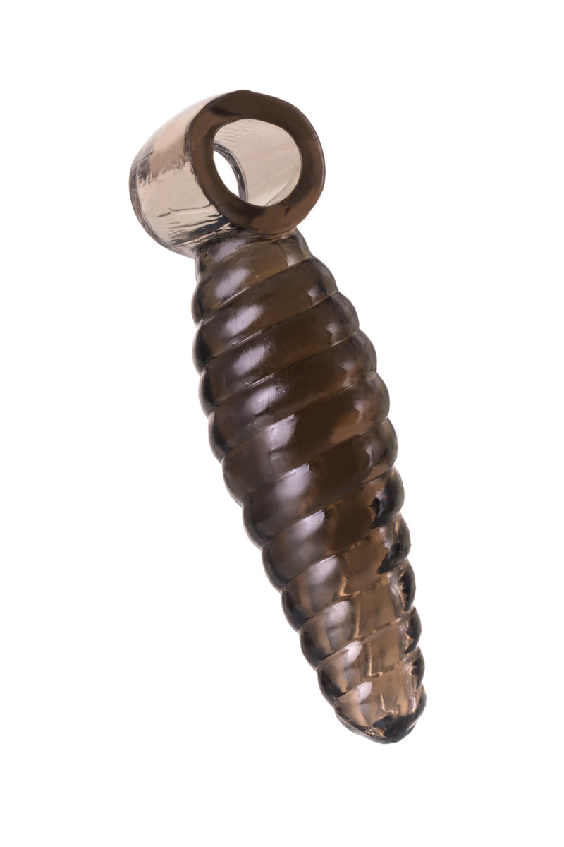 Серая анальная втулка небольшого размера, имеет рефленую поверхность. Благодаря небольшому кольцу надежно крепится на палец, что позволяет обеспечить полный контроль за введением.