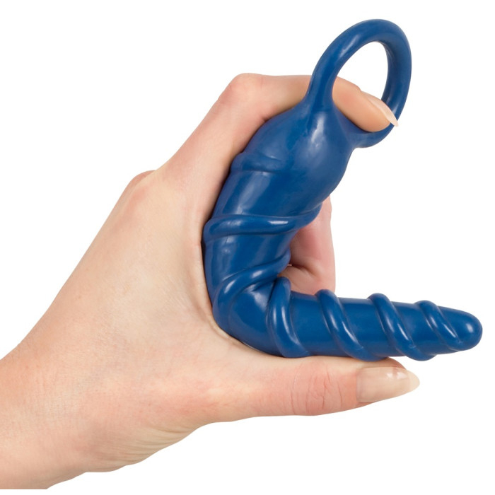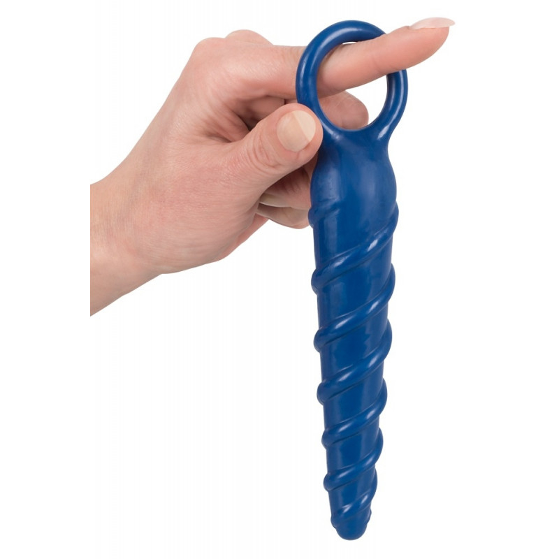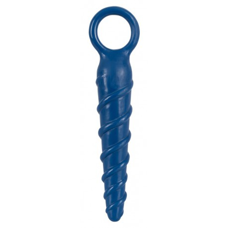 Анальный фаллоимитатор Erostyle темно-синий винтообразный с кольцом.