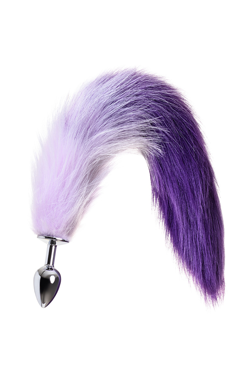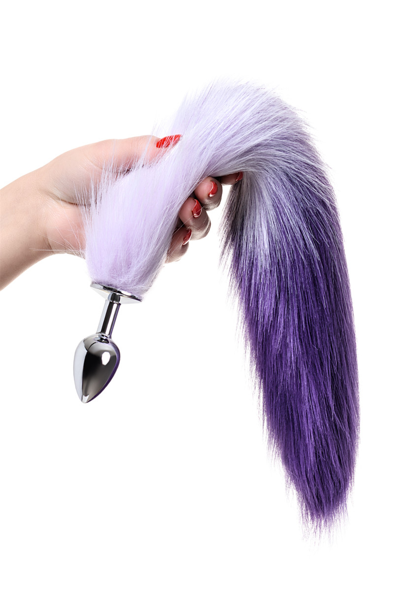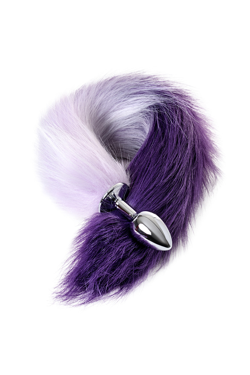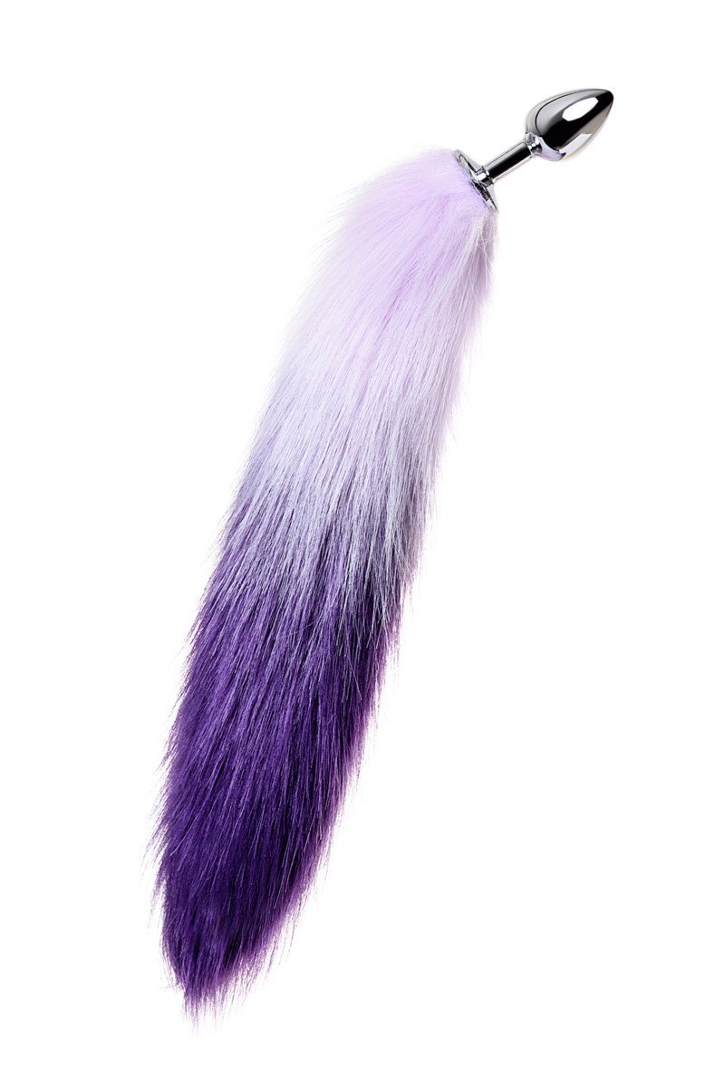Хвост искусственный бело-фиолетового цвета.