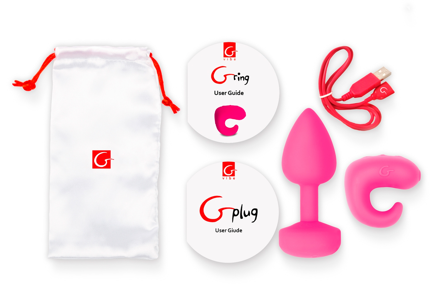 Набор состоит из анальной пробки Gplug и мини-вибратора на палец Gring. Игрушки синхронизируются, так что вы сможете управлять анальной пробкой при помощи колечка.