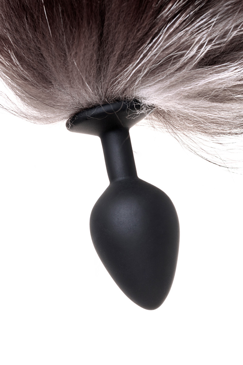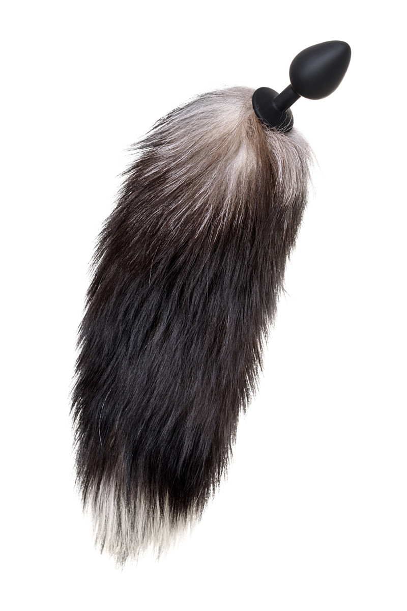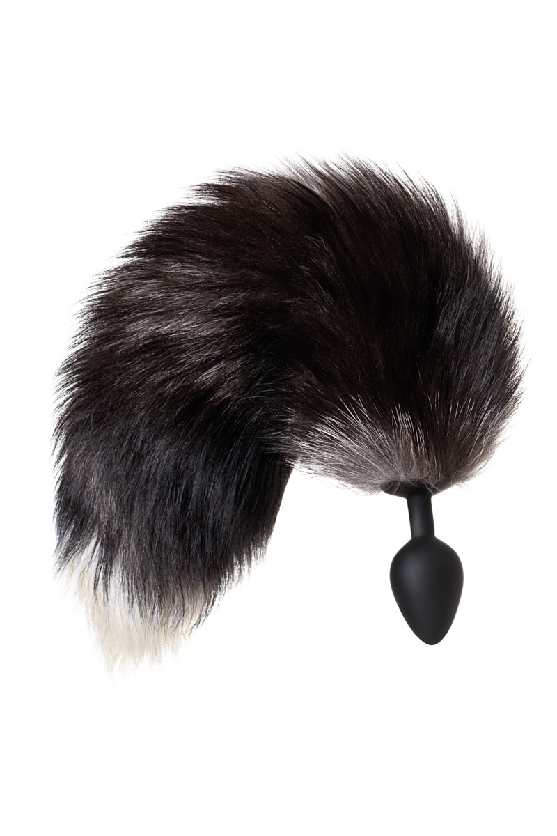 Анальная пробка чёрного цвета из силикона оформлена роскошным черным лисьим хвостом.