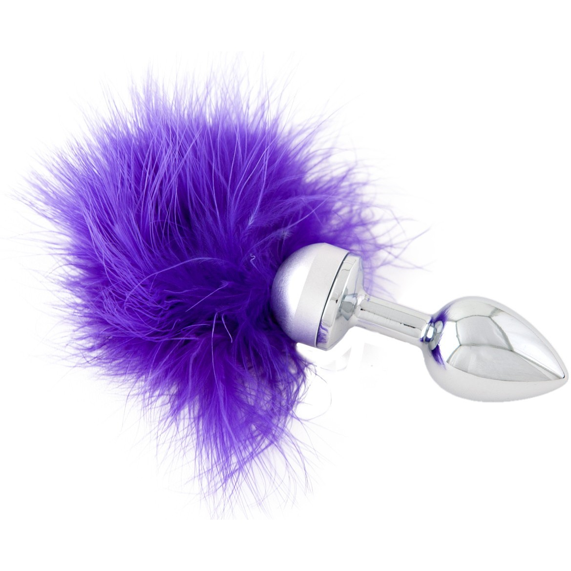 Создать образ такого зверька поможет умильный, красивый и весьма пикантный девайс серебристая анальная пробка с очаровательным круглым хвостиком из фиолетового пуха.