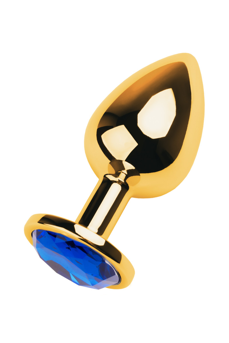 Анальная пробка из коллекции анальной ювелирки Toyfa Metal из медицинской стали декорирована большим сверкающим сапфиром.