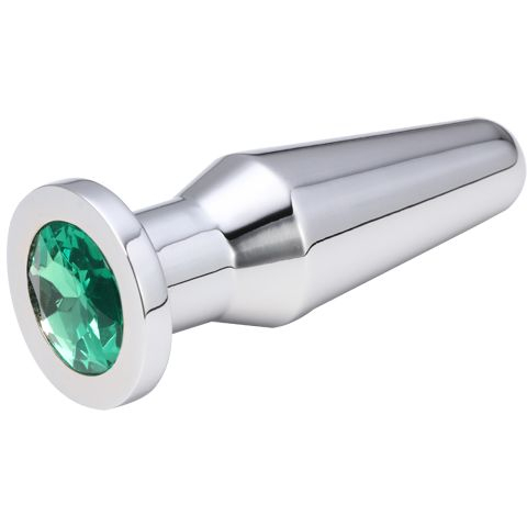 Анальная пробка с кристаллом изготовлена из медицинской стали серебряного цвета и украшена сверкающим прозрачным камнем цвета изумруда.Пробка имеет очень удобную, анатомическую форму, она слегка заострена на кончике и имеет небольшое расширение к центру, при этом основание пробки плоское и надежное. Она отлично фиксируется внутри Вас, демонстрируя только сверкающий кристалл