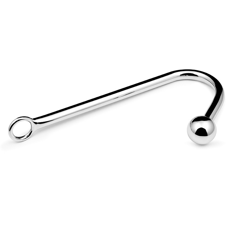 Анальный крюк из металла с круглым шаром на одном конце, а на втором кольцо . Анальный крюк должен иметь в своем арсенале каждый любитель секс фиксации и бондажа.