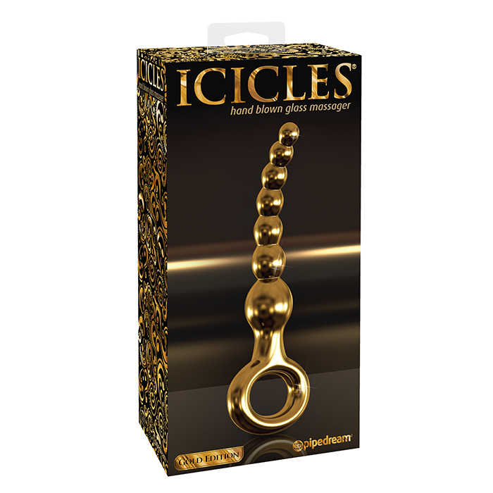 Благодаря своей уникальной изогнутой форме, он очень легко вводится и доставляет Вам потрясающее наслаждение. Стимулятор Icicles Gold Edition G11 - Gold имеет форму плавно переходящих округлых шариков, которые постепенно увеличиваются в размере. В основании стимулятора есть удобный ограничитель в виде кольца.