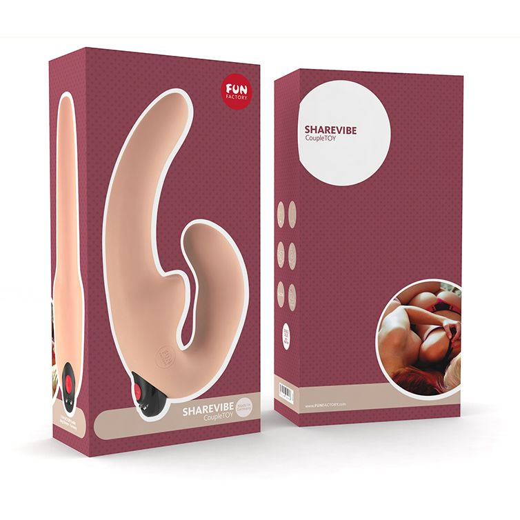 HAREVIBE - анатомический женский страпон нового поколения станет идеальной игрушкой для пар. Эту игрушку изобрели для того чтобы усилить близость между двумя влюбленными. Производитель разработал на столько совершенную форму, что Sharevibe движется органично с парой. Часть, соединяющая короткий конец с длинным концом, имеет гибкость, которая позволяет паре наслаждаться абсолютно всеми позициями из камасутры. Sharevibe двигается так, как будто он часть вашего тела.