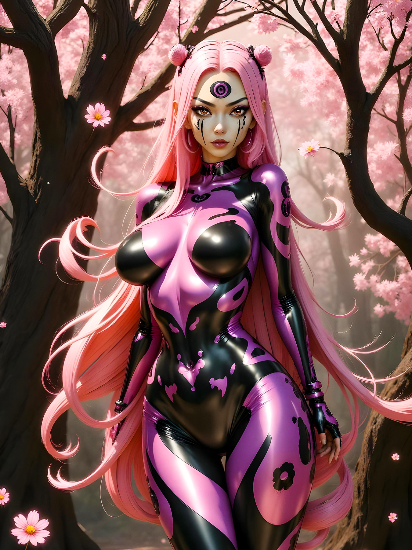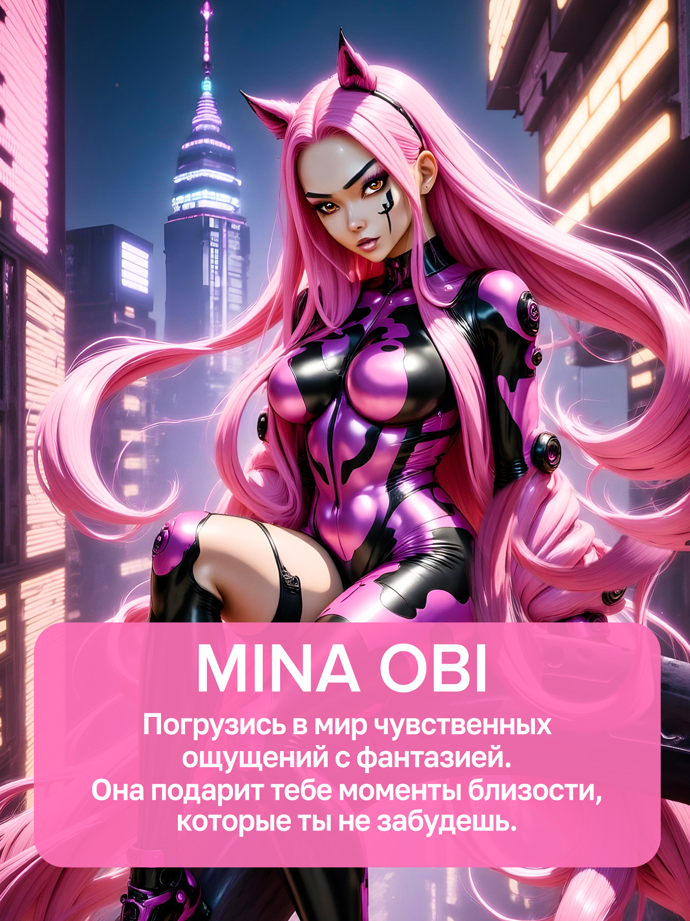 Представь: перед тобой Mina Obi - героиня, будто сошедшая со страниц твоего любимого хентай. Розовые волосы рассыпаются по плечам, фарфоровая кожа мерцает в мягком свете, в ее чарующих глазах искрящийся огонек азарта и невинной дерзости. На ней изысканный латексный комбинезон черно-лилового цвета, плотно облегающий каждую линию ее стройной фигуры. Глянцевая ткань подчеркивает изящную талию, соблазнительные бедра и завораживающие формы груди, отражая свет и маня прикоснуться. Легкая улыбка, затейливо изогнувшаяся на ее губах, обещает необыкновенные приключения в мире удовольствий, где фантазия не знает границ.