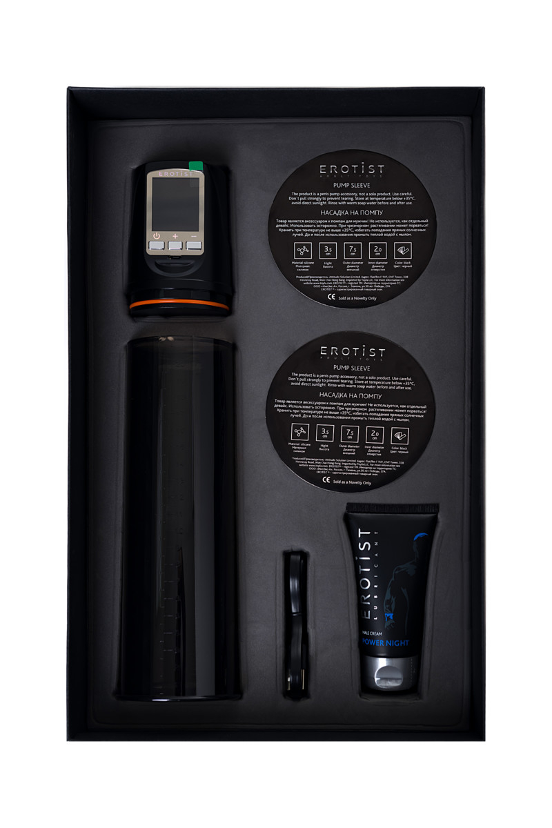 Erotist ToZoom представляет собой прозрачную колбу, в которой с помощью вакуума создается полезное для полового члена разряжение воздуха. Разряжение в колбе усиливает кровоснабжение и способствует расширению пещеристого тела. Тренажер состоит из прозрачной колбы, на колбу надевается уплотнительная насадка которая будет плотно обхватывать член и миникомпьютера с электронным дисплеем.