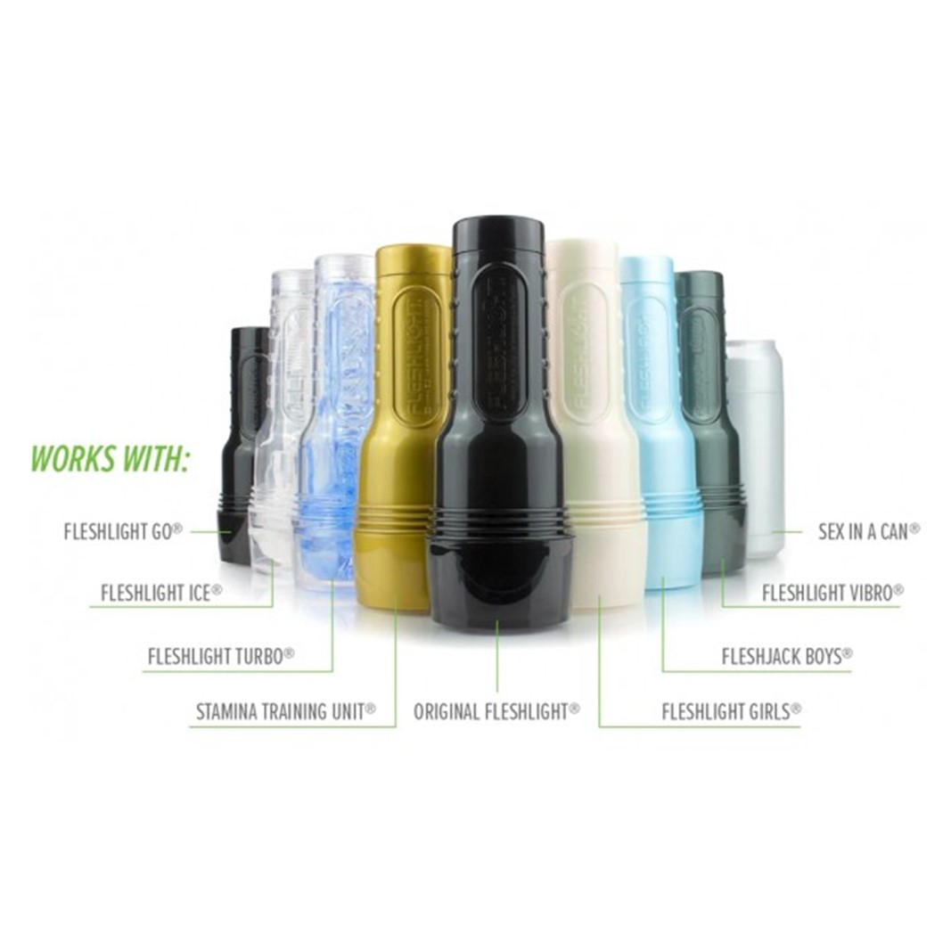 Надежно закрепите мастурбатор Fleshlight с помощью универсальной системы, проденьте изделие через круглое отверстие с захватом. Отрегулировав желаемое положение, используйте большую защелку, чтобы затянуть рукоятку. Поднимите большую защелку с левой стороны, чтобы плотно зафиксировать ремешок, стараясь не перетянуть и не повредить универсальный пусковой механизм. Затем включите питание и наслаждайтесь многочисленными функциями продукта!