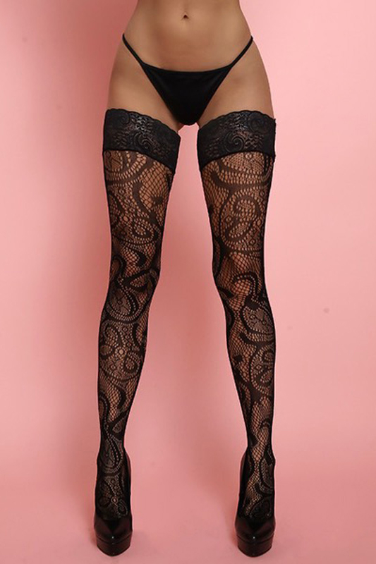 Чулки c ажурным рисунком, сверху украшены кружевной резинкой на силиконе. Плотность эквивалентна 20 ден.