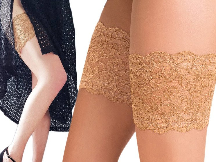 Такие ажурные повязки с силиконовой поддержкой не только красивый аксессуар, но и спасение для чувствительной кожи на бедрах девушек от трения в жаркую погоду, когда нельзя надеть колготки или чулки.
