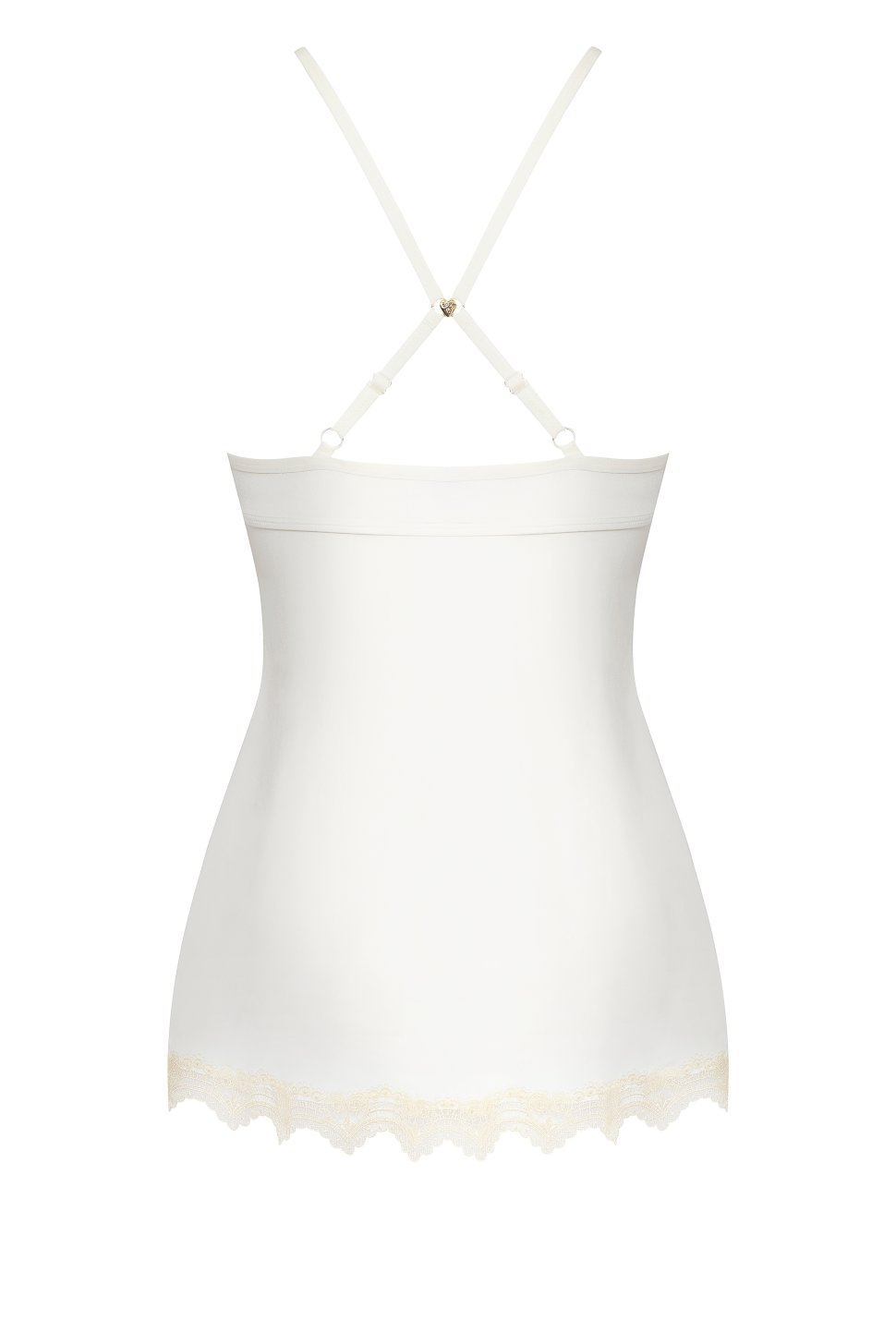 Сорочка на тонких регулируемых лямочках, которые соблазнительно перекрещиваются на спине, открывая спину и плечики для поцелуев.