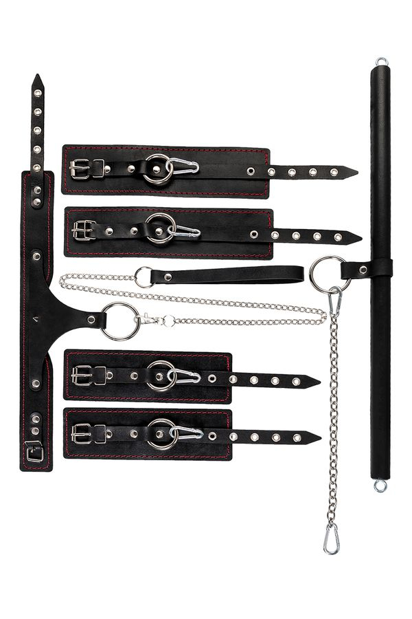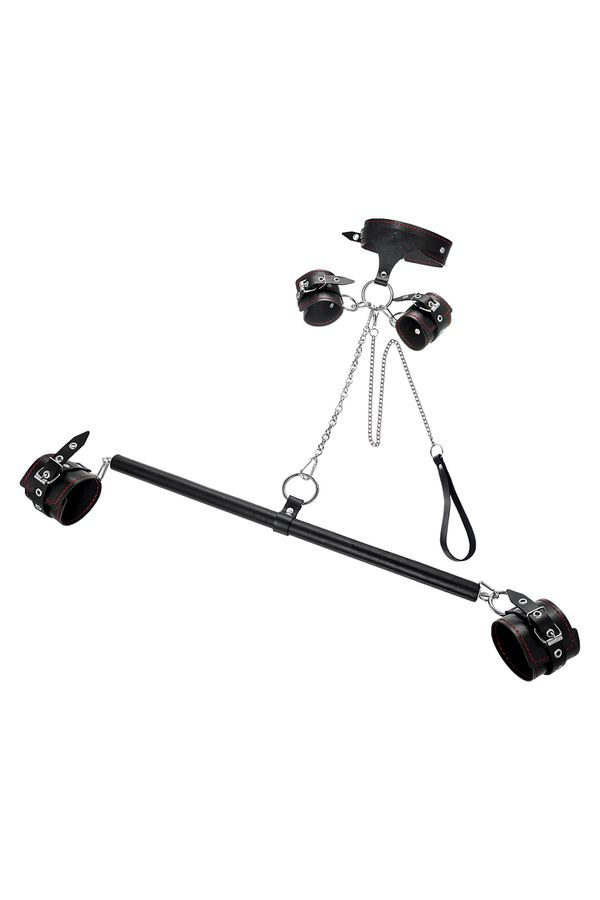 С этим набором расширить возможности и способы фиксации проще простого! Варианты и комбинации ограничения свободы партнера зависят от вашей фантазии и желаний. Распорка позволяет зафиксировать ноги партнера в широко разведенной позиции. Частичное обездвиживание и невозможность двигать руками или ногами дают вам полную власть над партнером – взрослые игры для взрослых. Кольцо посередине распорки позволяет использовать дополнительные аксессуары, либо приковать партнера к кровати или другому предмету и экспериментировать с позициями и ощущениями.