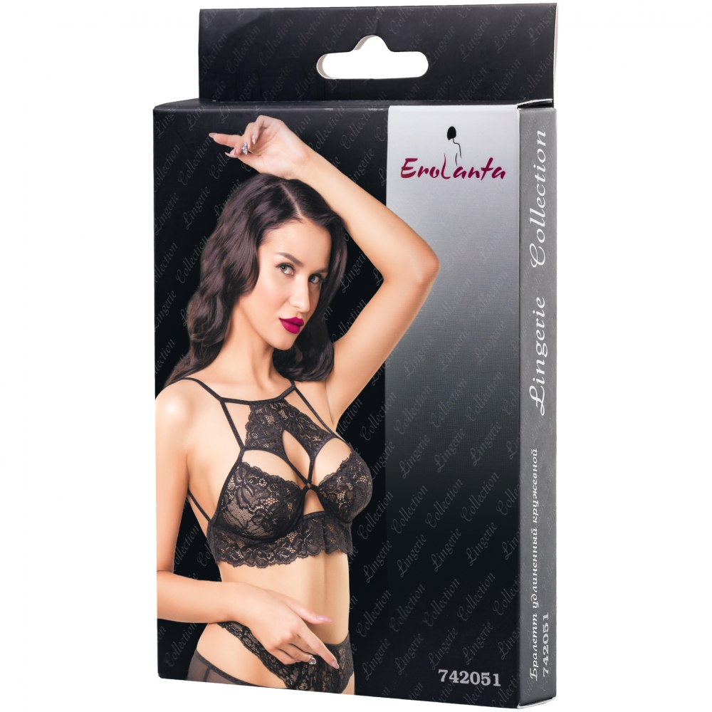 Воздушное эластичное кружево нежно облегает грудь. Интригующие вырезы в зоне декольте делают силуэт изысканным, как десерт, который едят глазами.