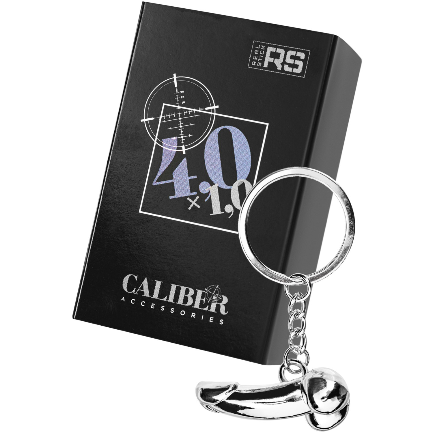 Металлический брелок CALIBER в форме фаллоса — оригинальный аксессуар для поклонников ярких и нестандартных решений!