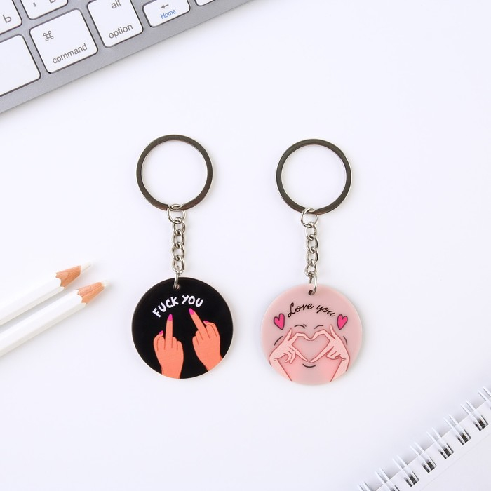 Брелок молодая и красивая дрянь имеет две рабочие стороны: одна про любовь, вторая про особую любовь.