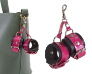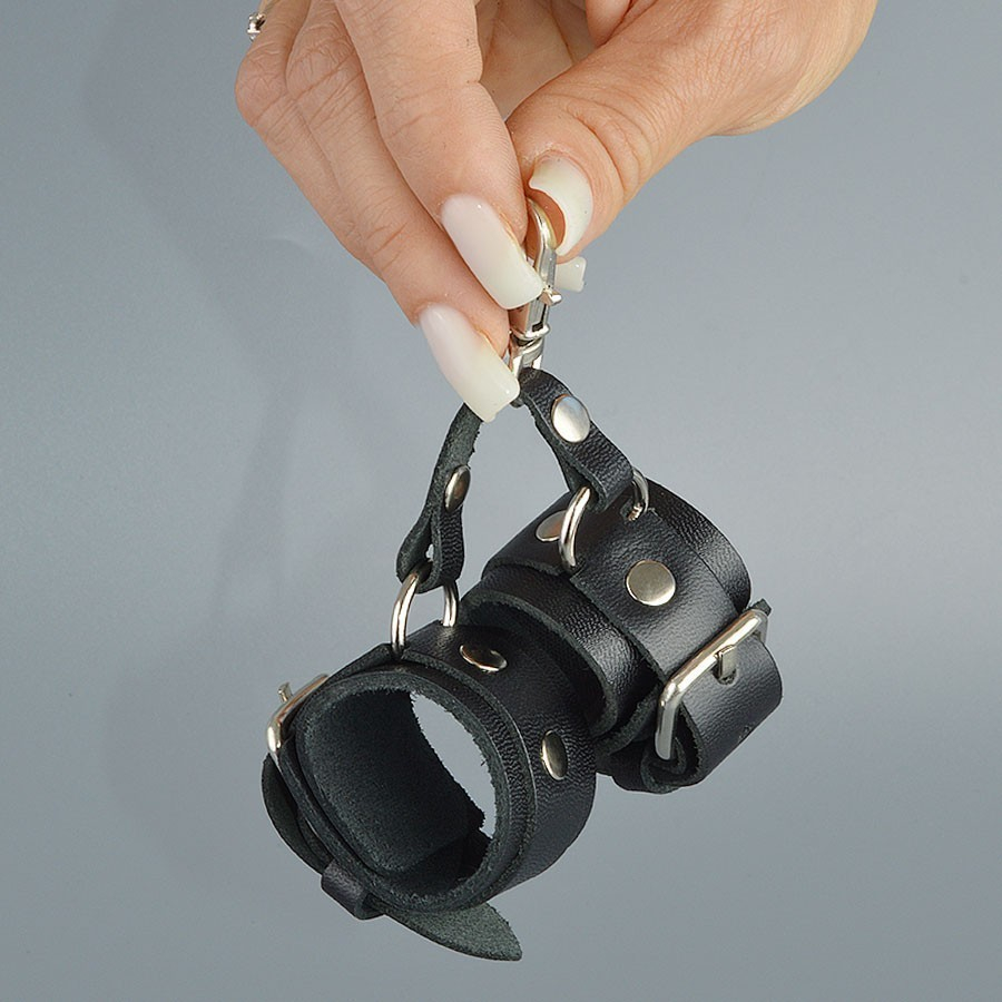 Брелок в виде наручников, выполнен из натуральной кожи. Крепится за счет прочного карабина.