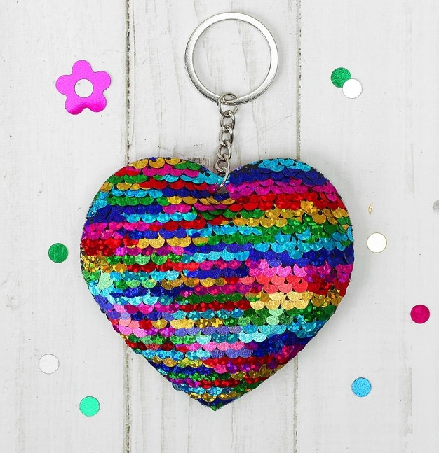 Брелок в форме сердечка обшитого пайетками прекрасно заменит открытку-валентинку и расскажет о вашей любви. Приятные совместные моменты просто необходимы такие вещицы, потому что именно они будут напоминать вам о самом лучшем, что было в ваших отношениях.