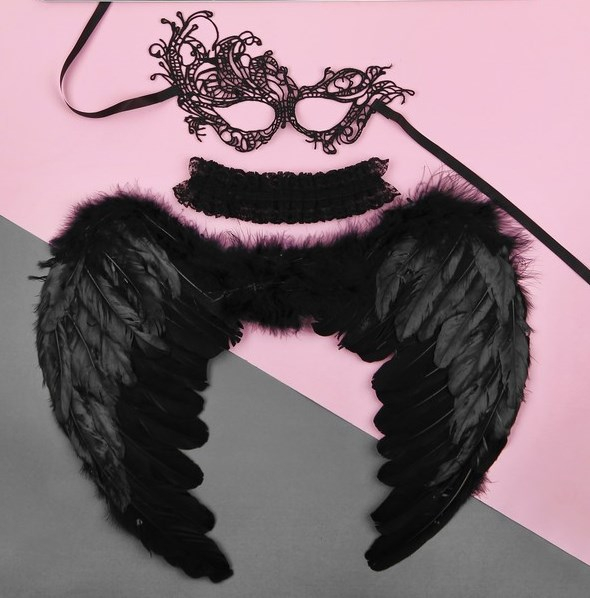 Карнавальный набор черный ангел прекрасно дополнит ваш эротический наряд.