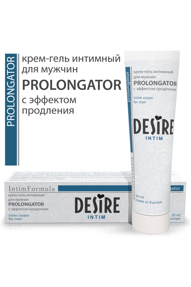 Крем-гель интимный для мужчин - PROLONGATOR, линия ''Desire intim'' используется как смазывающее средство и предназначен для предотвращения преждевременного семяизвержения и продления полового акта партнером до момента достижения оргазма партнершей.