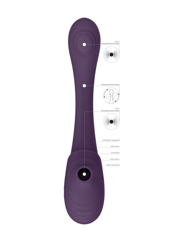 Благодаря своей форме девайс позволяет одновременно осуществлять как внутреннюю, так и внешнюю стимуляцию, потому что корпус прекрасно гнется. Расположите стимулятор на точке G, согните девайс в скобу и расположите второй конец на головке клитора. Тебя ждут головокружительные оргазмы, не сомневайся.