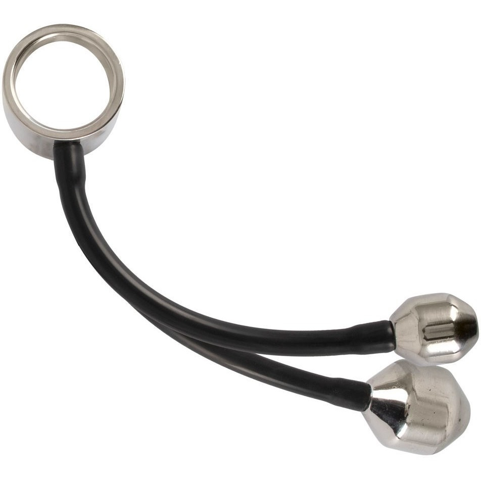 Heavy Gear cock ring ass plugs - это гладкое полированное металлическое кольцо для пениса с 2 фигурными, прочно зафиксированными грузиками-пробками на гибких силиконовых ремешках. Кольцо для пениса прочно фиксирует пенис и может эффективно поддерживать эрекцию. Грузики-пробки могут вводиться в анус или возбуждающе болтаться в промежности.