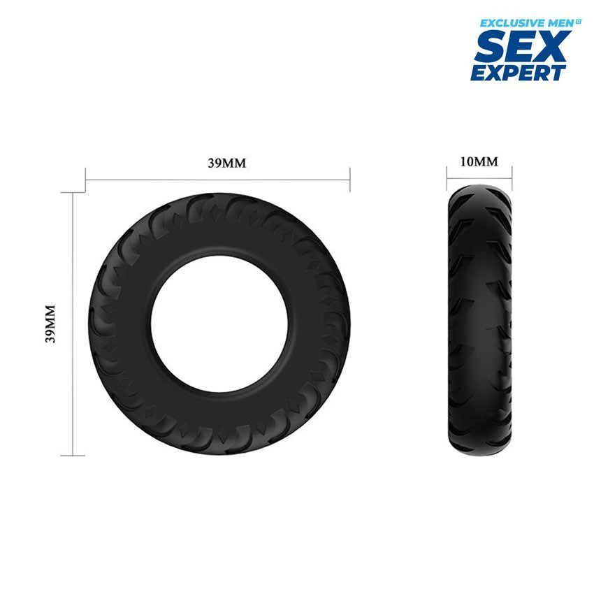Эрекционное кольцо в виде автомобильной шины с рельефной поверхностью будет украшать твой член. Кольцо выполнено в глубоком черном цвете, оно эластичное и имеет комфортный размер.