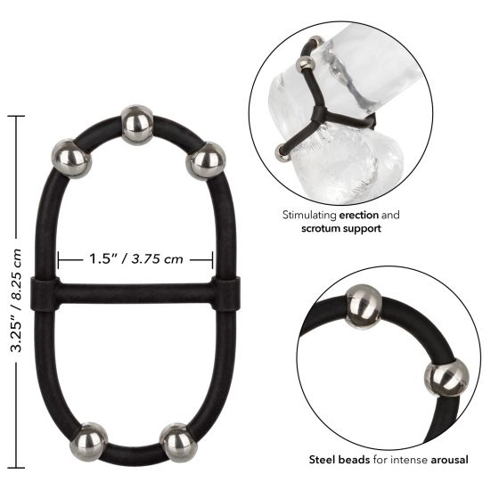 Сверхэластичное кольцо для эрекции и поддержки мошонки, несомненно, усилит удовольствие за счет увеличения выносливости, чувствительности и обхвата. Ожидайте взрывного удовольствия от каждого дразнящего движения стальных бусин с регулируемым и подвижным расположением. Это сильное поддерживающее кольцо балует вашего мужчину повышенной выносливостью, обхватом и чувствительностью, в то время как вы можете наслаждаться его размерами и твердостью, а захватывающие бусинки-стимуляторы дразнят вас в стране чудес оргазма.