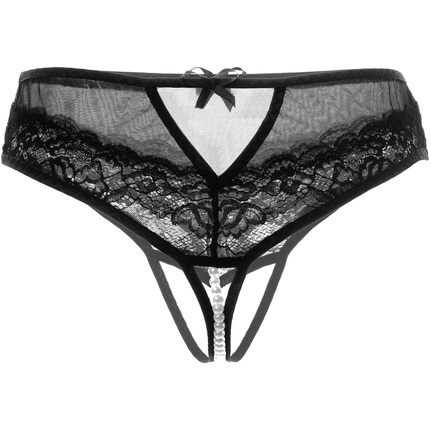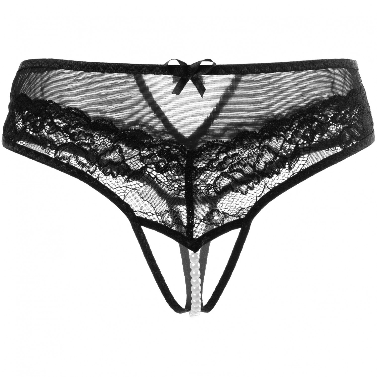 Прозрачная как легкая вуаль сетка в сочетании с шикарным эластичным кружевом изящно обрамляет линию бедер. Жемчужная нить нежно стимулирует половые губы, клитор, анус и приковывает внимание к интимной зоне.
