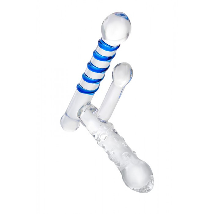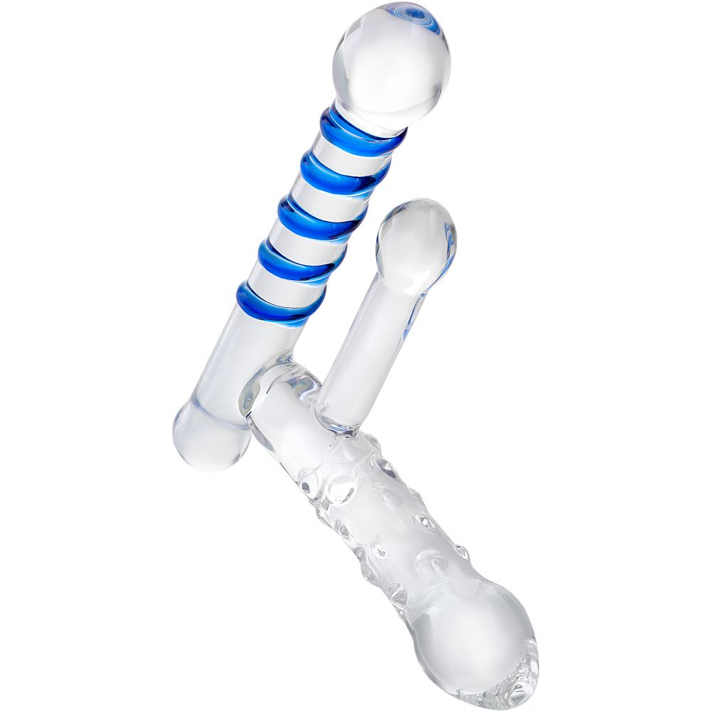 Эффектный двухсторонний фаллоимитатор, имеющий сразу 3 фаллоса - совмещённые вагинальный и анальный с одной стороны, и вагинальный отросток - размещённый под прямым углом, который можно использовать и для стимуляции, и как ручку-держатель.