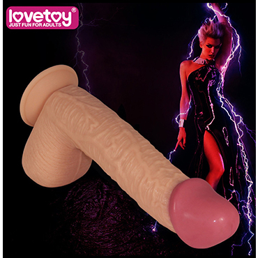 LoveToy King-sized Realistic Dildo - реалистичный фаллоимитатор с мошонкой и присоской. Игрушка обладает идеальным рельефом с детально прорисованной головкой, контурными венами и мошонкой. Увеличенная головка загнутой формы обеспечит интенсивную стимуляцию влагалища и точки G. Благодаря мощной присоске, данную модель можно закрепить на любой плоской поверхности. Фаллоимитатор выполнен из безопасного и приятного на ощупь ПВХ, без содержания фталатов.