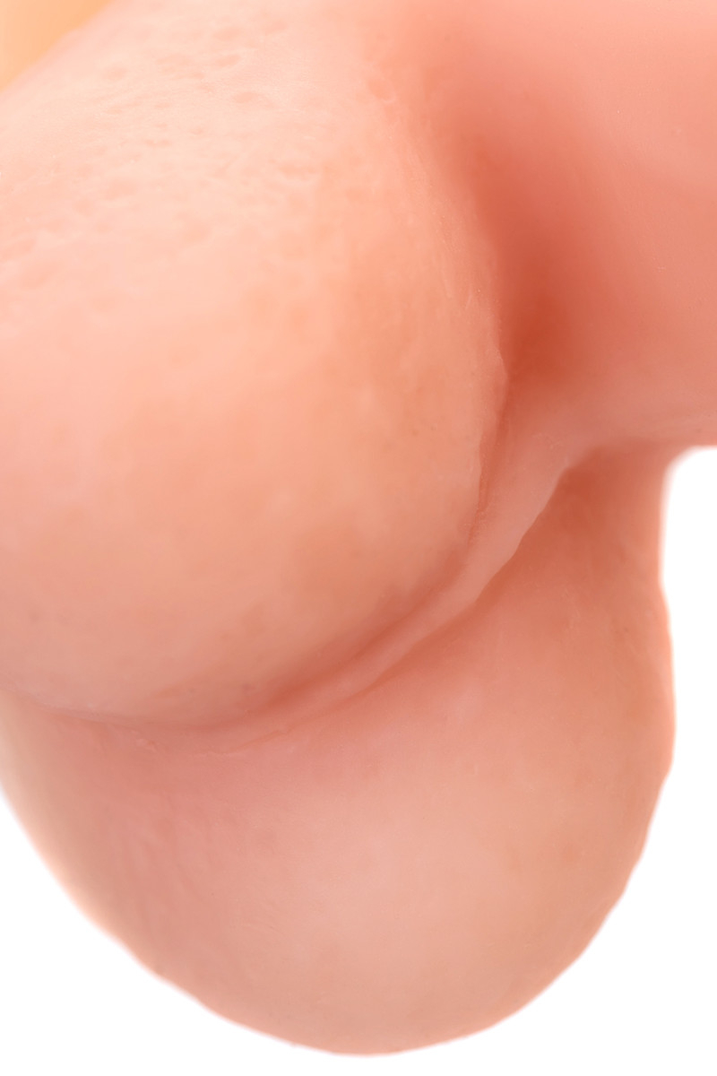Выраженная нежная головка, рельефные вены и морщинистая мошонка обеспечивают дополнительную стимуляцию. Фаллос выглядит как эрегированный мужской член с красивым, здоровым цветом кожи- ваши глазки будут блистать на него. В основании мощная присоска, которая позволяет крепить изделие на любой гладкой поверхности, это значительно разнообразит позы.