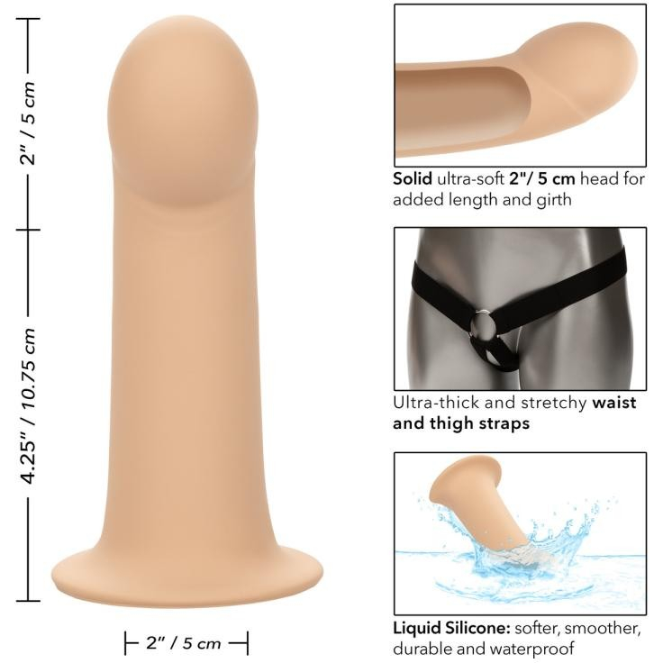Фаллопротез имеет реалистичный вид, выраженную головку с гладким стволом создает дополнительные ощущения как визуально, так и физически. Внутри фаллопротез полый, но он эластичный и удобный, так что заскальзывайте во внутрь и мгновенно становитесь бюольше. Мягкая головка фаллопротеза увеличивает член в длину на целых 5 см, такую головку можно ещё назвать плавающей, так как она не смотря на свою мягкость, достаточно упругая.