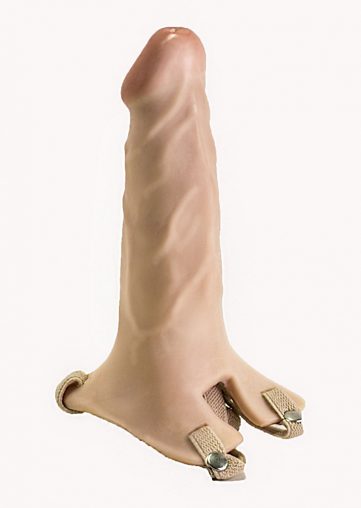 Пустотелый фаллопротезс мошонкой телесного цвета с регулируемыми ремешками. Ствол фаллоса имеет выраженную головку и прорисованные вены для дополнительной стимуляции. Игрушку можно использовать в качестве фаллоимитатора, предварительно отстегнув все ремешки.