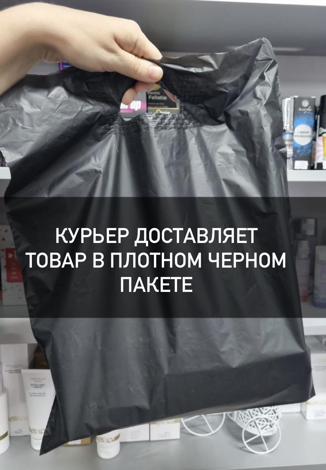 Товар доставляется в черном непрозрачном пакете, без каких либо опознавательных надписей.