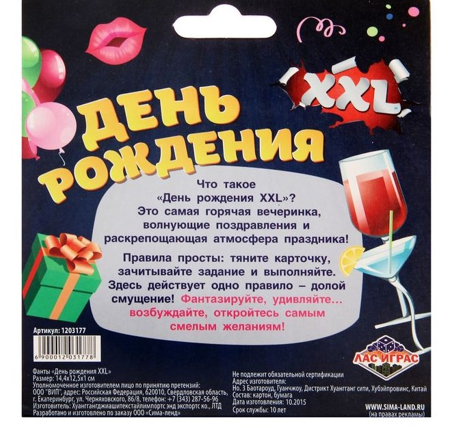 День рождения — это самая горячая и запоминающаяся вечеринка года! А сделать её именно такой поможет набор фантов, который находится перед вами. В нём вы найдёте самые безбашенные задания: стоит только начать выполнять их, и вам уже не остановиться.