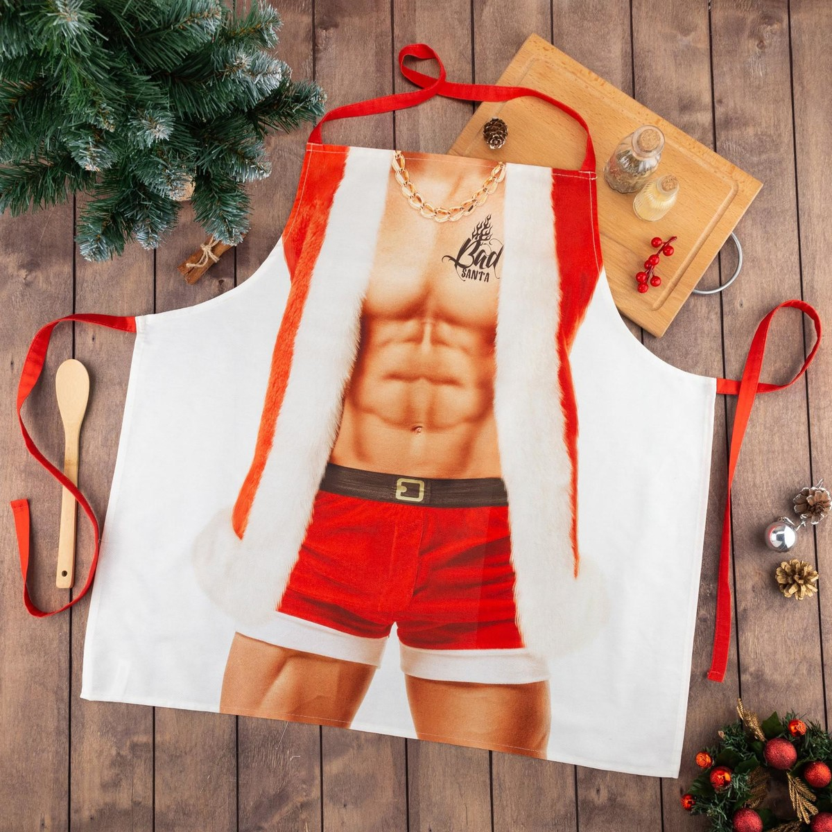 Что может быть лучше проснуться 1 января, а на кухне готовит завтрак плохой санта - согласитесь девчонки, мечта! Обязательно положите под ёлку этот фартук для своего любимого и попросите утром приготовить завтрак. Мужчина в таком наряде, да ещё и с завтраком безумно сексуален.
