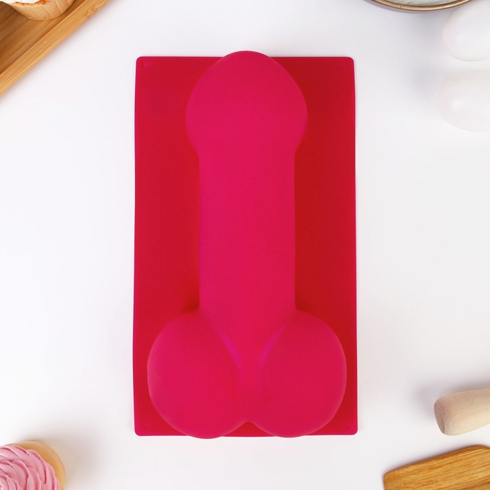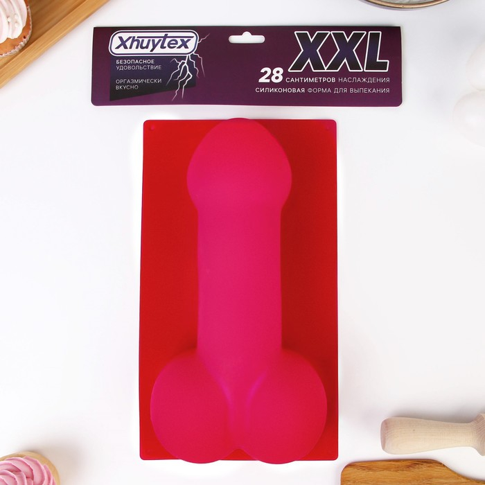 Силиконовая форма для выпечки в виде большого члена XXL, малинового цвета из пищевого силикона, выдерживает температуру от -40 до +240 градусов, для морозилки, духовки (духового шкафа), микроволновки, для индукции.