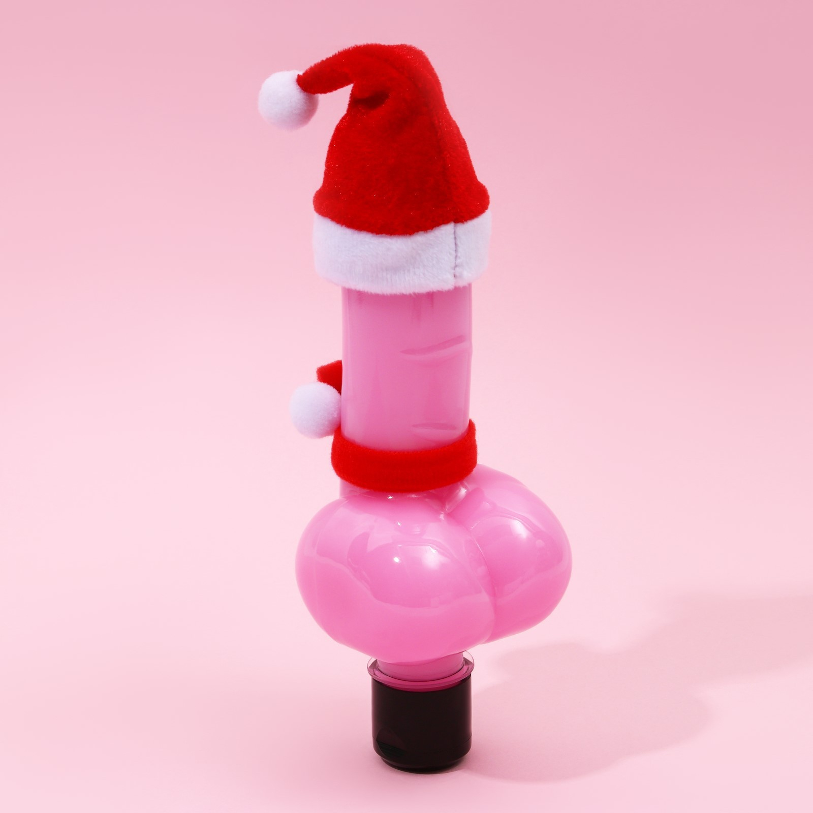 Гель для душа "Плохо себя вела" в форме члена в новогоднем колпаке и шарфике.