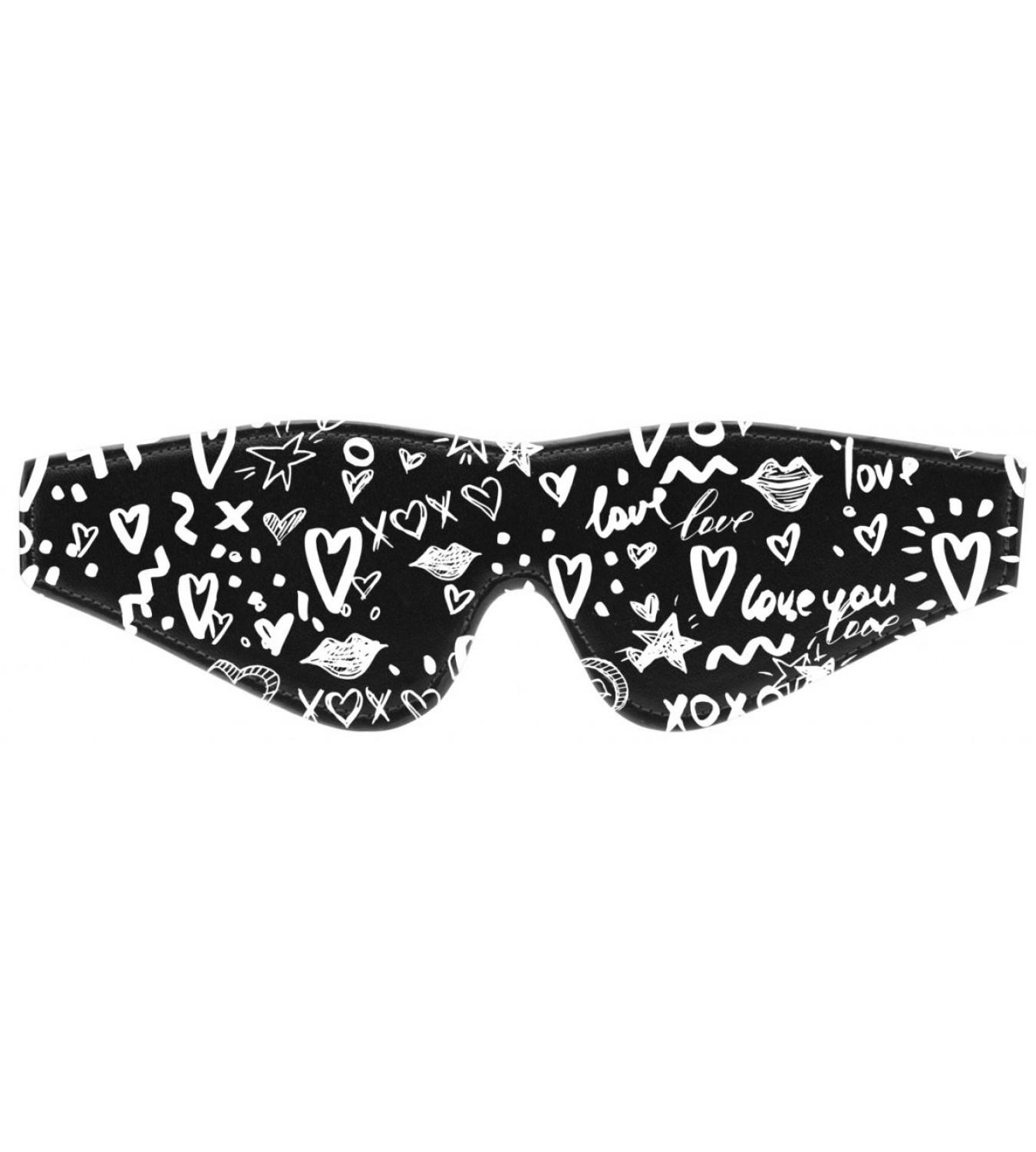 Маска оформлена с применением изображений в стиле «стрит-арт». Белые значки, будто бы нарисованные от руки, покрывают черную кожу, создавая эффектный молодежный дизайн.
