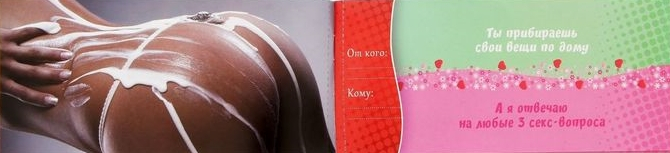 Теперь все домашние дела будут в радость! Ведь после вас ожидает романтическое и эротическое вознаграждение! Дарите горячие купоны, и вы найдёте новый источник сексуального вдохновения.