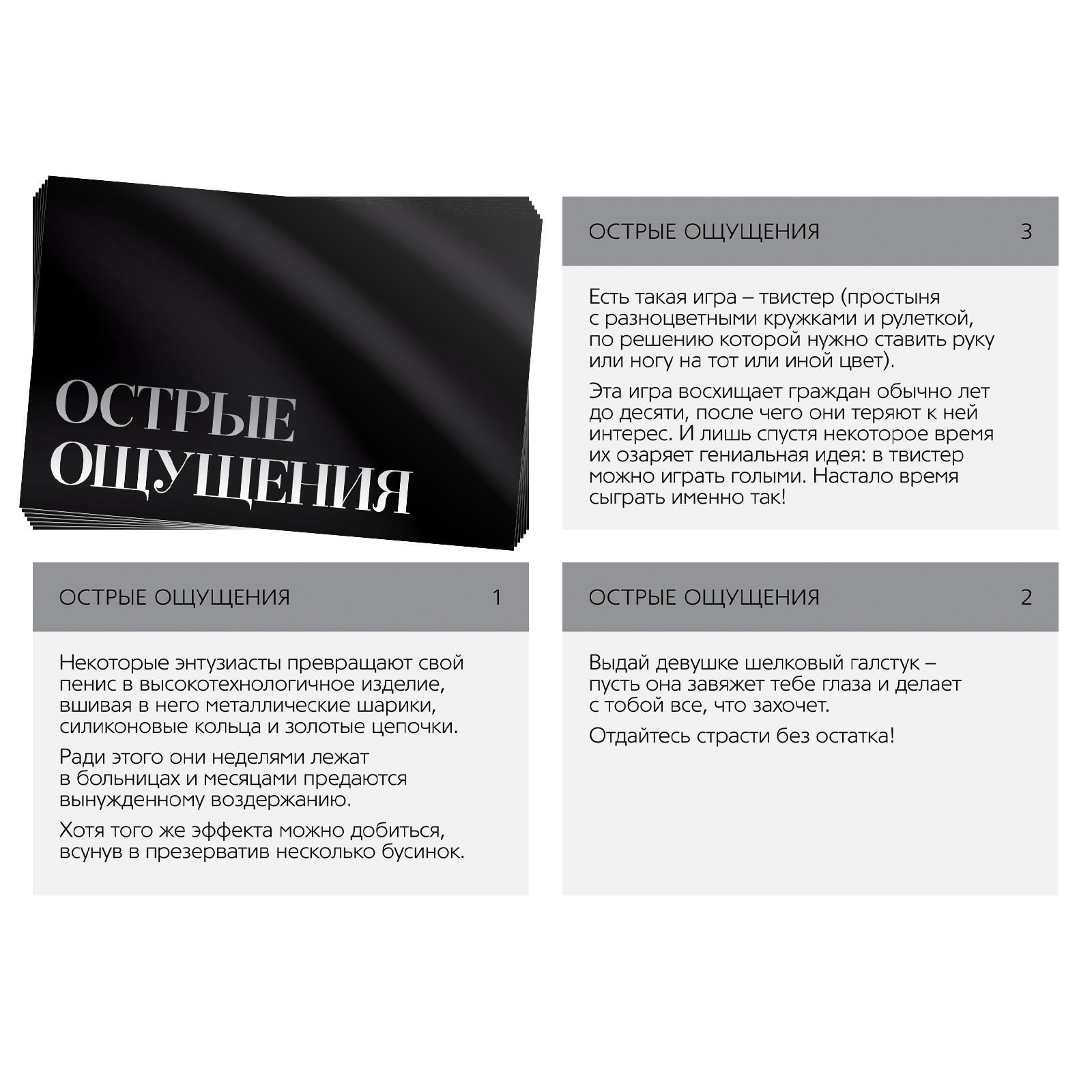 Тяните карту, выполняйте указанное на ней задание и окунайтесь в мир острых ощущений, ярких эмоций и головокружительных чувств!