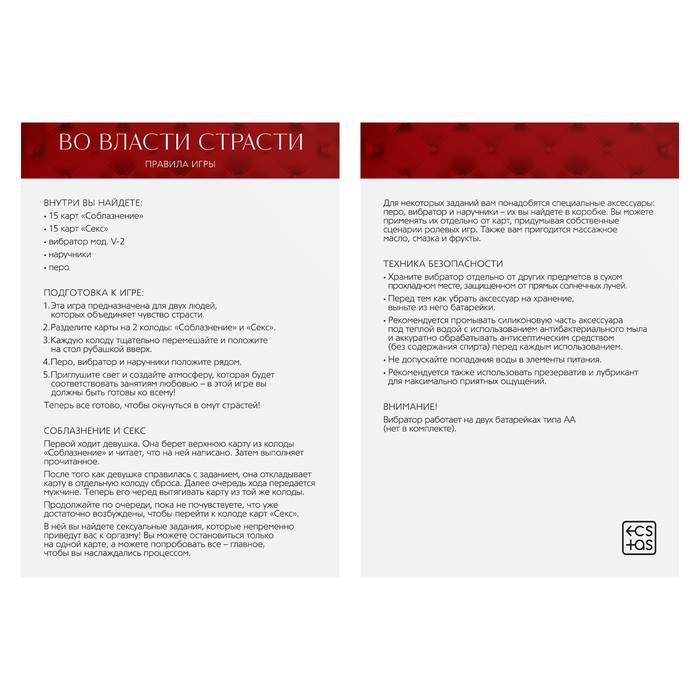 Используйте в качестве прелюдии карты соблазнения, пока не почувствуете, что уже достаточно возбуждены, чтобы перейти к колоде карт для занятия сексом, которые непременно приведут вас к невероятному оргазму!