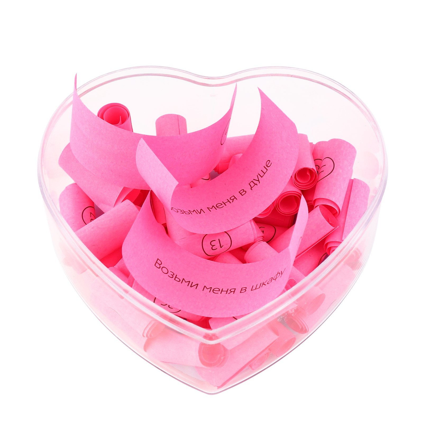 В пластиковом контейнере в виде сердца есть 50 свернутых листов заданий.... Развлекайся