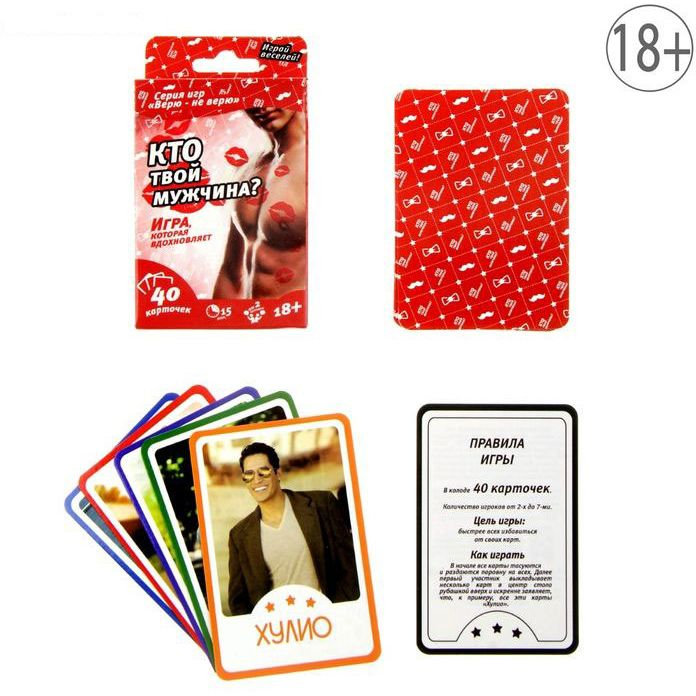 В игре 40 карточек с изображением сексуальных мачо, ваша задача заключается в том, чтобы быстрее всех игроков избавиться от них. Выкладывая несколько карт на стол, вы в праве заявить, что на них изображены те или иные мужчины, на ваше усмотрение, а остальные могут вам поверить или заподозрить неладное. Игра очень динамичная, веселая и интересная.